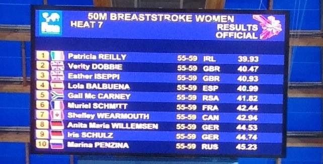 So big day 50 breast and my best seeded event (4th) going into it. I warmed up and went to sit on the temporary stand behind the blocks to try and pick up the rhythm of the event.