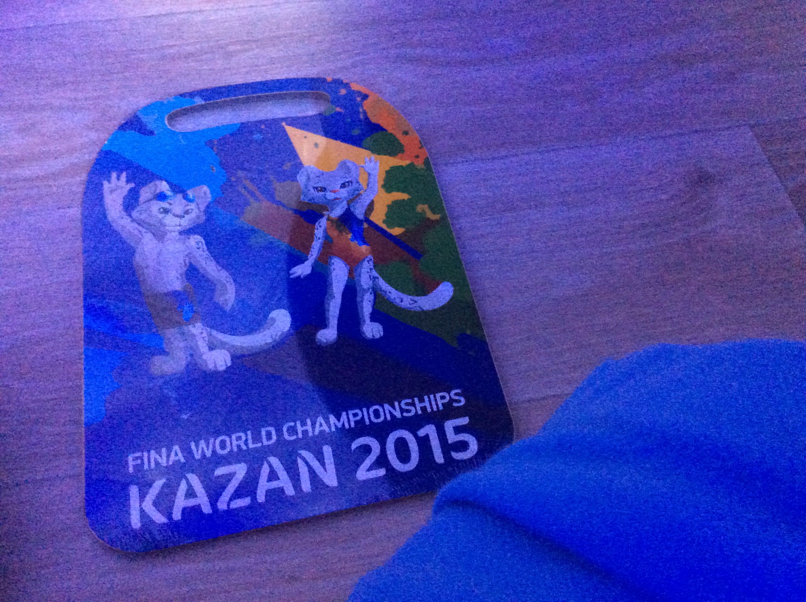 I discovered that the Russians are absolutely masterful at producing tat and amongst other stuff, mugs, plastic wrist bands. pins, fridge magnets, and socks I snagged a Championships chopping board (yes a chopping board even though it closely resembles a kick board) for Teenage Triathlete to take to University with her next month (I know she’ll be thrilled by my thoughtfulness!).